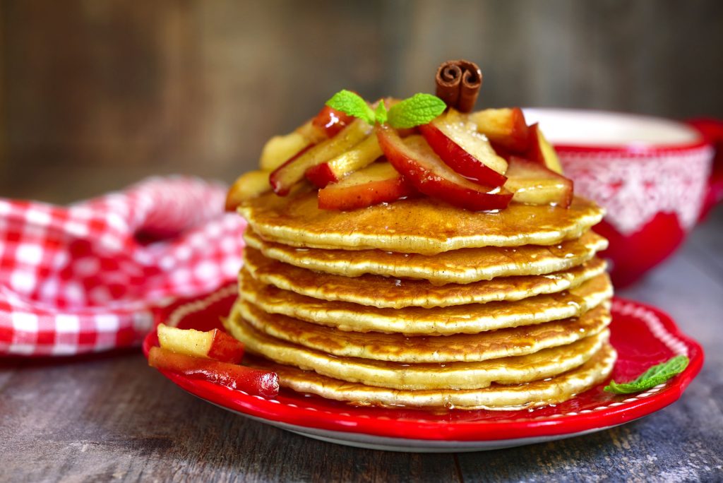 5/ Faites chauffer une crêpière graissée. Trempez les tranches de pomme dans la pâte et déposez-les dans la poêle. Laissez cuire quelques minutes. Lorsque la pâte est bien prise, retournez les pancakes et poursuivez la cuisson quelques minutes de l’autre côté, jusqu’à ce qu’ils soient bien dorés.